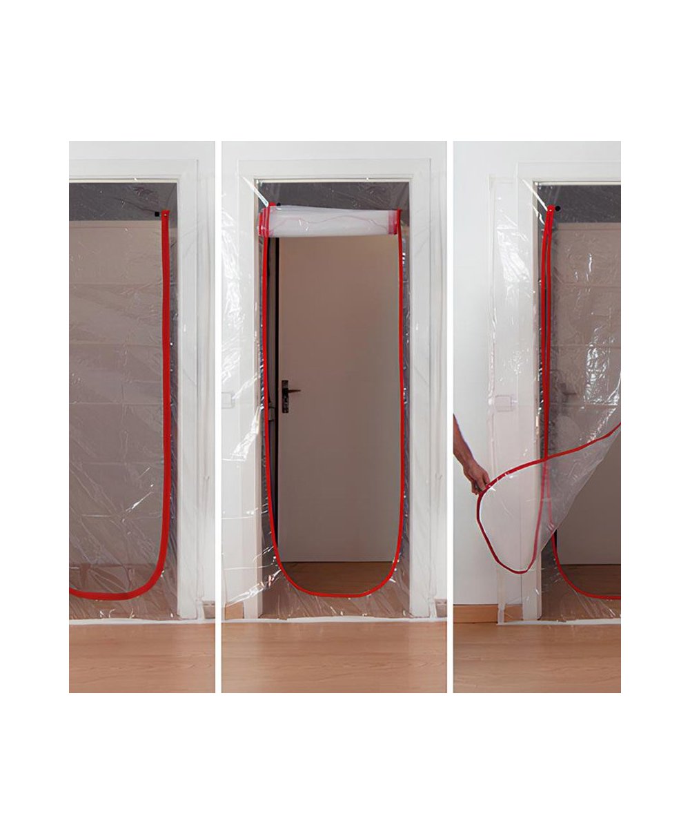 Mantenha o seu espaço limpo e organizado durante obras, remodelações ou trabalhos de pintura com esta proteção em plástico para porta com fecho. Fabricada em plástico resistente e transparente, permite isolar com segurança diferentes divisões, evitando a passagem de pó, tinta ou sujidade.
