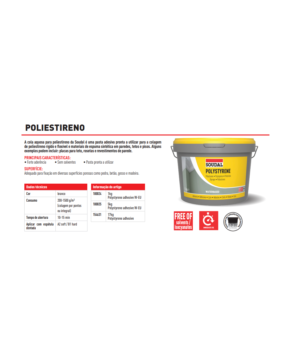 Cola para Revestimento para Poliestireno é uma pasta adesiva pronta a utilizar, para a colagem no interior de produtos de poliestireno sobre substratos porosos.