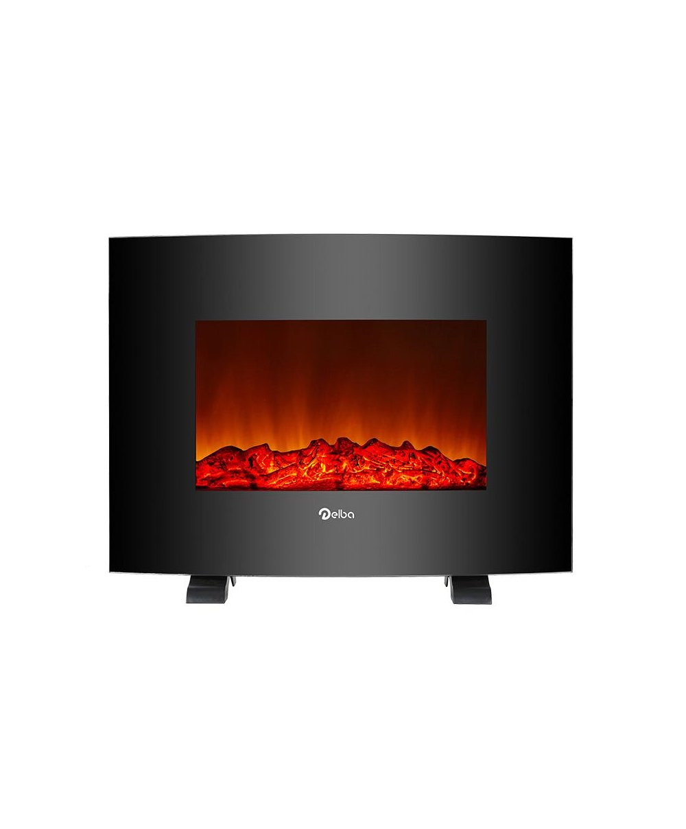Salamandra elétrica de parede Delba DB-677 com 2000W de potência. Inclui controlo remoto, chama ajustável e painel de vidro curvado. Ideal para aquecer espaços interiores com design moderno e inovador.