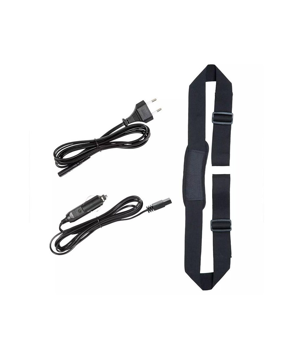 A estrutura robusta inclui rodas grandes e pega extensível tipo trolley, facilitando o transporte mesmo em terrenos irregulares. O visor LED e os botões táteis garantem um controlo fácil e intuitivo da temperatura. Além disso, inclui porta USB para carregar dispositivos móveis — perfeita para aventuras prolongadas.