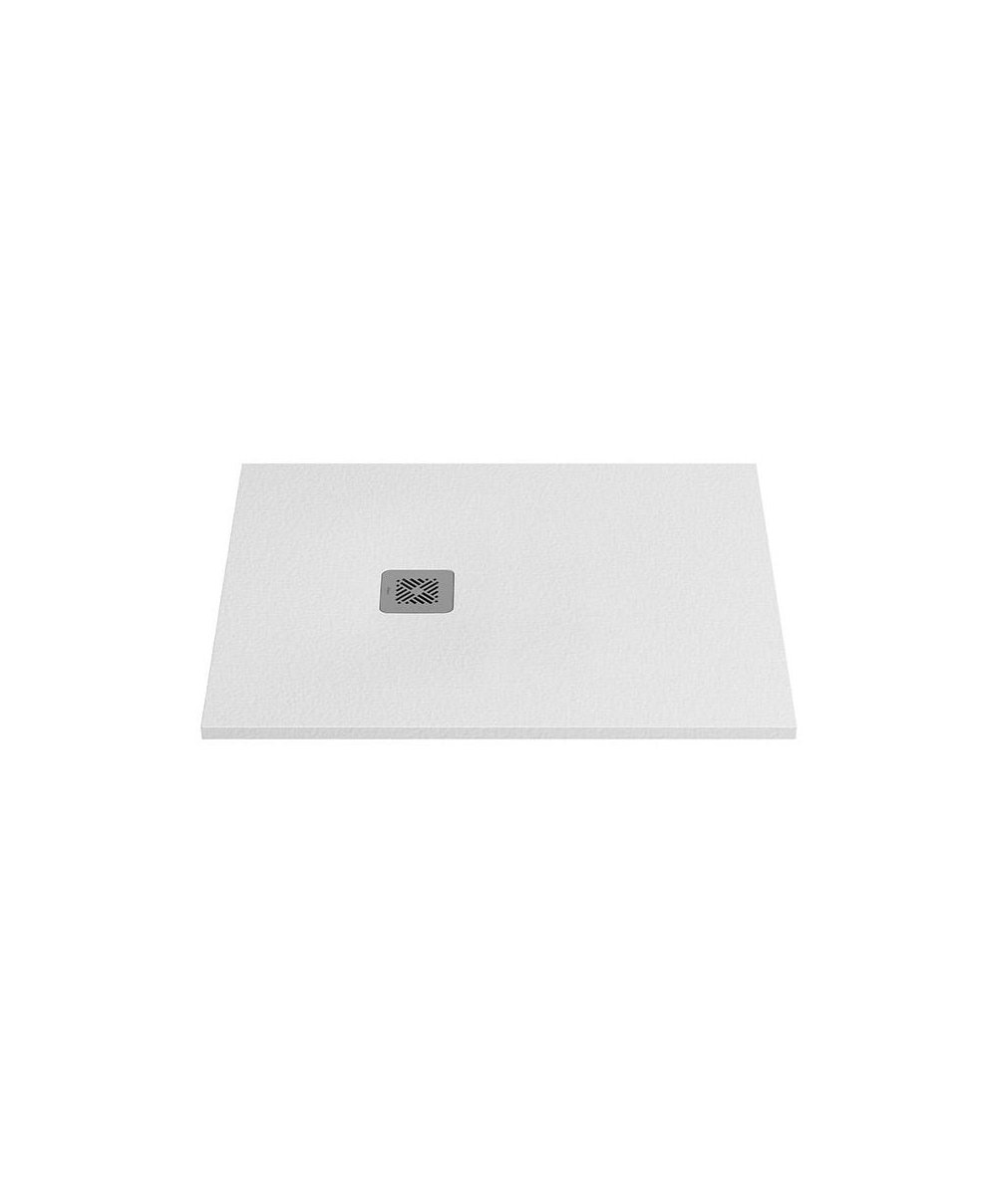 Base de duche Strat da Sanitana em Stonex®, com design moderno, toque suave e superfície antiderrapante. Disponível em vários tamanhos e acabamentos sendo que esta tem 100x80cm e é branca, inclui válvula Ø90 mm e grelha em aço inoxidável.