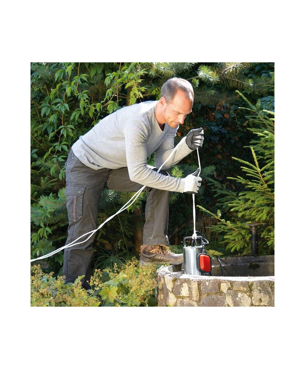 Com um consumo de 1000 Watts, esta bomba atinge uma taxa até 18 000 litros de águas residuais por hora. O corpo da bomba é em aço inoxidável de alta qualidade, que garante um longo tempo de funcionamento. A vedação mecânica de elevada qualidade, protege o motor e praticamente elimina a necessidade de manutenção. Um interruptor/bóia ajustável gradualmente permite a seleção entre operação contínua e um nível pré-selecionado de ativação e desativação. Para flexibilidade, a bomba submersível vem com uma ligação universal e um suporte de 90º e possui uma pega para o transporte fácil.