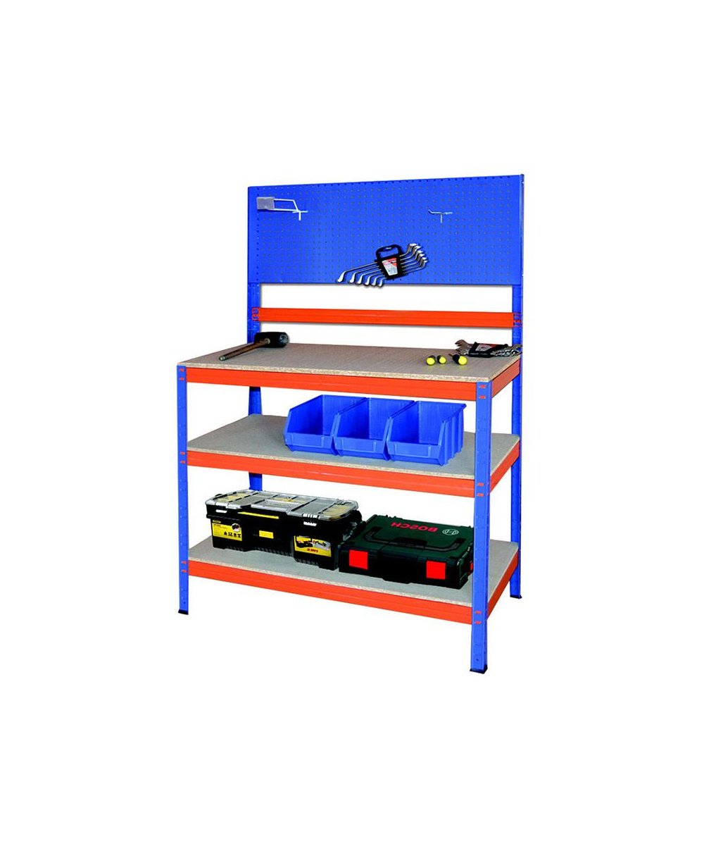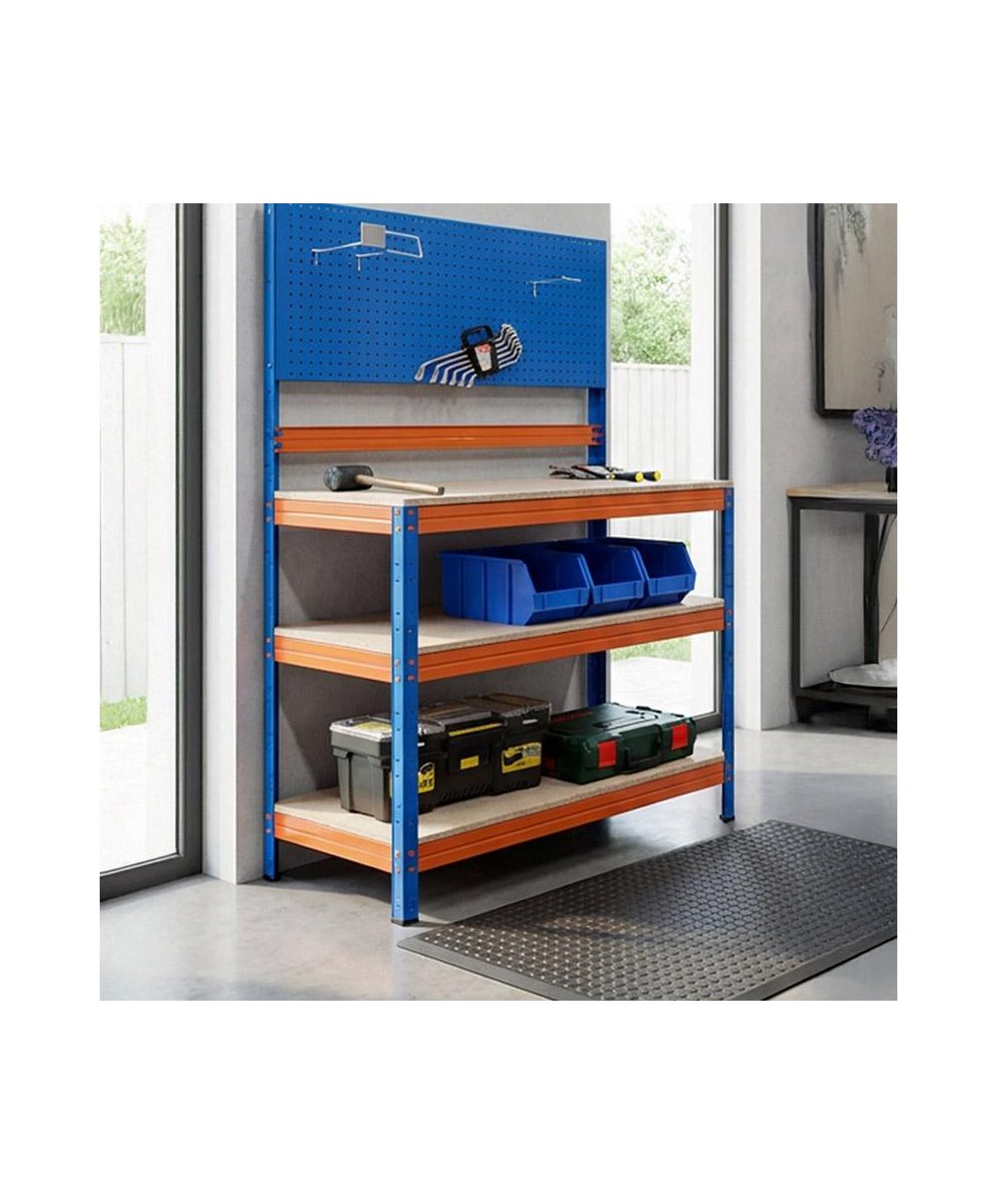 A Bancada de Trabalho para Bricolage com 3 prateleiras (150x100x50 cm) é a solução robusta e funcional para a sua garagem, oficina ou espaço de arrumação. Fabricada em aço resistente nas cores laranja e azul, oferece grande estabilidade e capacidade de carga, ideal para organizar ferramentas, materiais e realizar trabalhos manuais com segurança e eficiência.