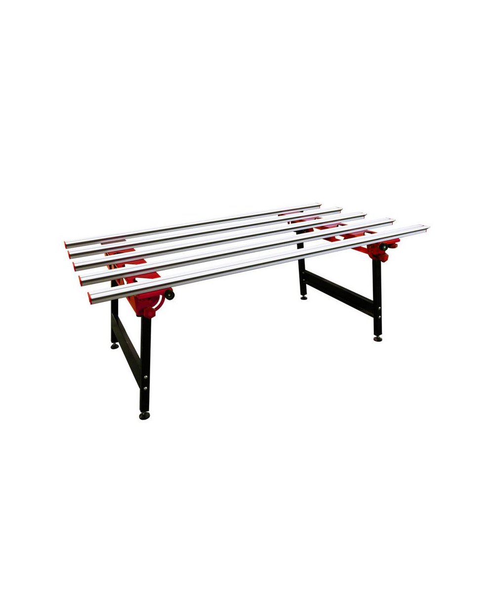 Bancada de trabalho para corte e manuseamento de peças cerâmicas de grande formato. As barras de alumínio extra reforçadas conferem ao MESA SLAB uma alta rigidez e grande estabilidade. Proporcionando uma capacidade de carga máxima de até 250 kg.