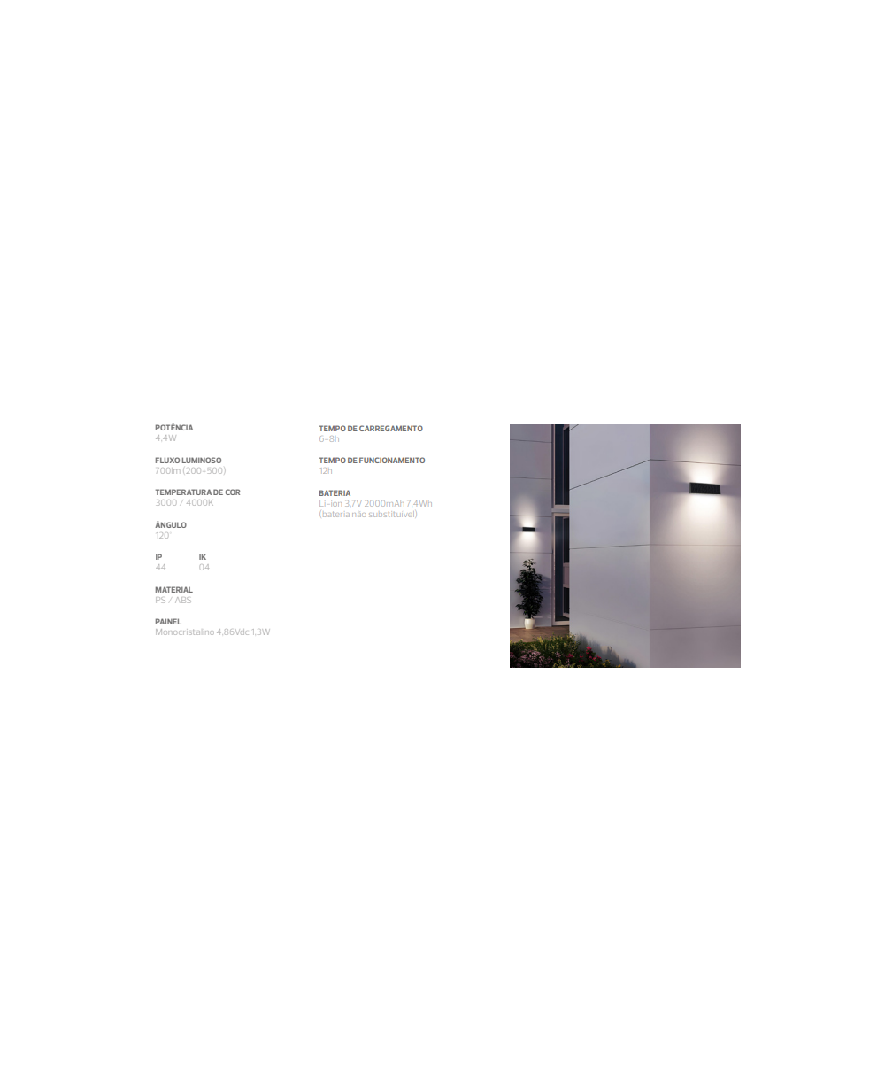 Aplique solar parede Led HILL 6W 4000K