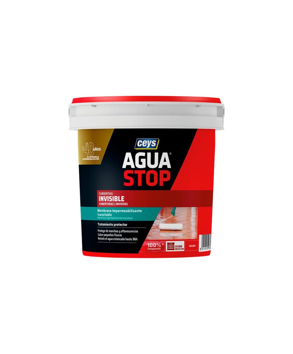 AGUASTOP INVISÍVEL é uma micro membrana impermeabilizante para o tratamento preventivo ou de reparação de coberturas. Protege o suporte de infiltrações de água, sem modificar o seu aspeto original. Forma um recobrimento que resiste ao trânsito pedonal e à água estancada.