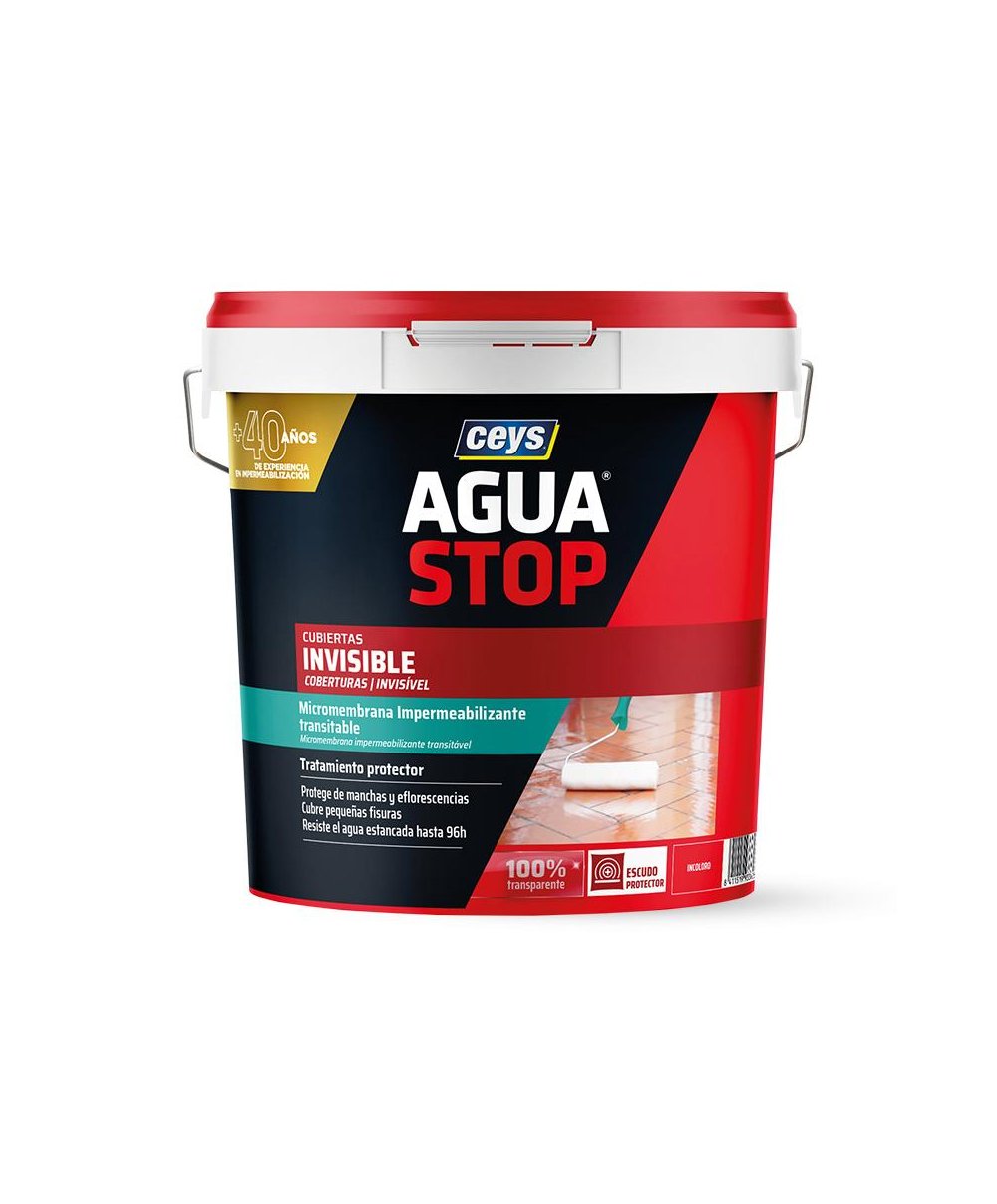 AGUASTOP INVISÍVEL é uma micro membrana impermeabilizante para o tratamento preventivo ou de reparação de coberturas. Protege o suporte de infiltrações de água, sem modificar o seu aspeto original. Forma um recobrimento que resiste ao trânsito pedonal e à água estancada.