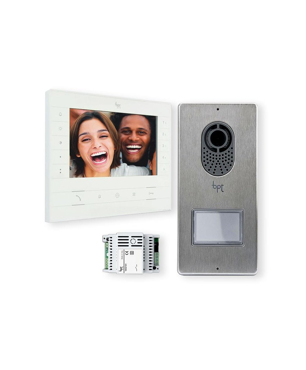 O Kit Videoporteiro Cores Futura X1 FUTURAKITVC04 da Bpt é a escolha ideal para residências que exigem segurança avançada. Este sistema suporta até 4 chamadas e oferece uma função Intercom de série, tudo através de um sistema de vídeo porteiro X1 de apenas 2 fios. O kit inclui um elegante monitor de vídeo a cores de 7 polegadas, uma placa botoneira e um alimentador.