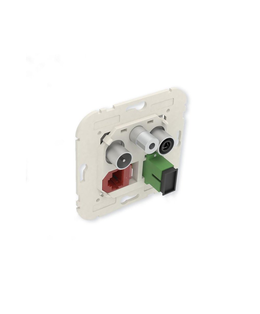 Tomada mista R-TV-SAT-RJ45 Cat6 UTP-FO SC-APC estrela 21545