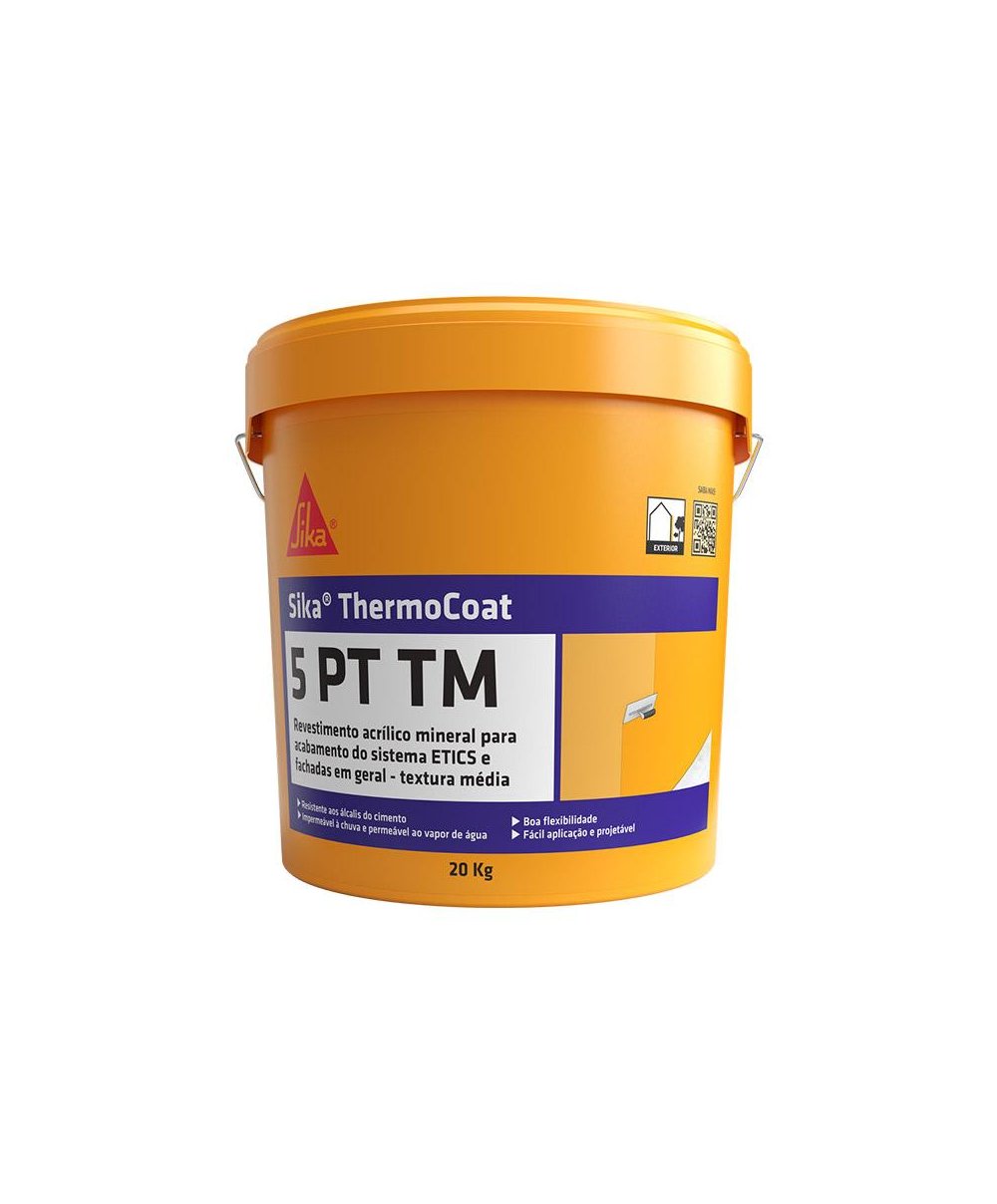 Sika ThermoCoat®-5 PT TM, é um revestimento acrílico mineral em dispersão aquosa para acabamento do sistema ETICS e revestimento de fachadas em geral..