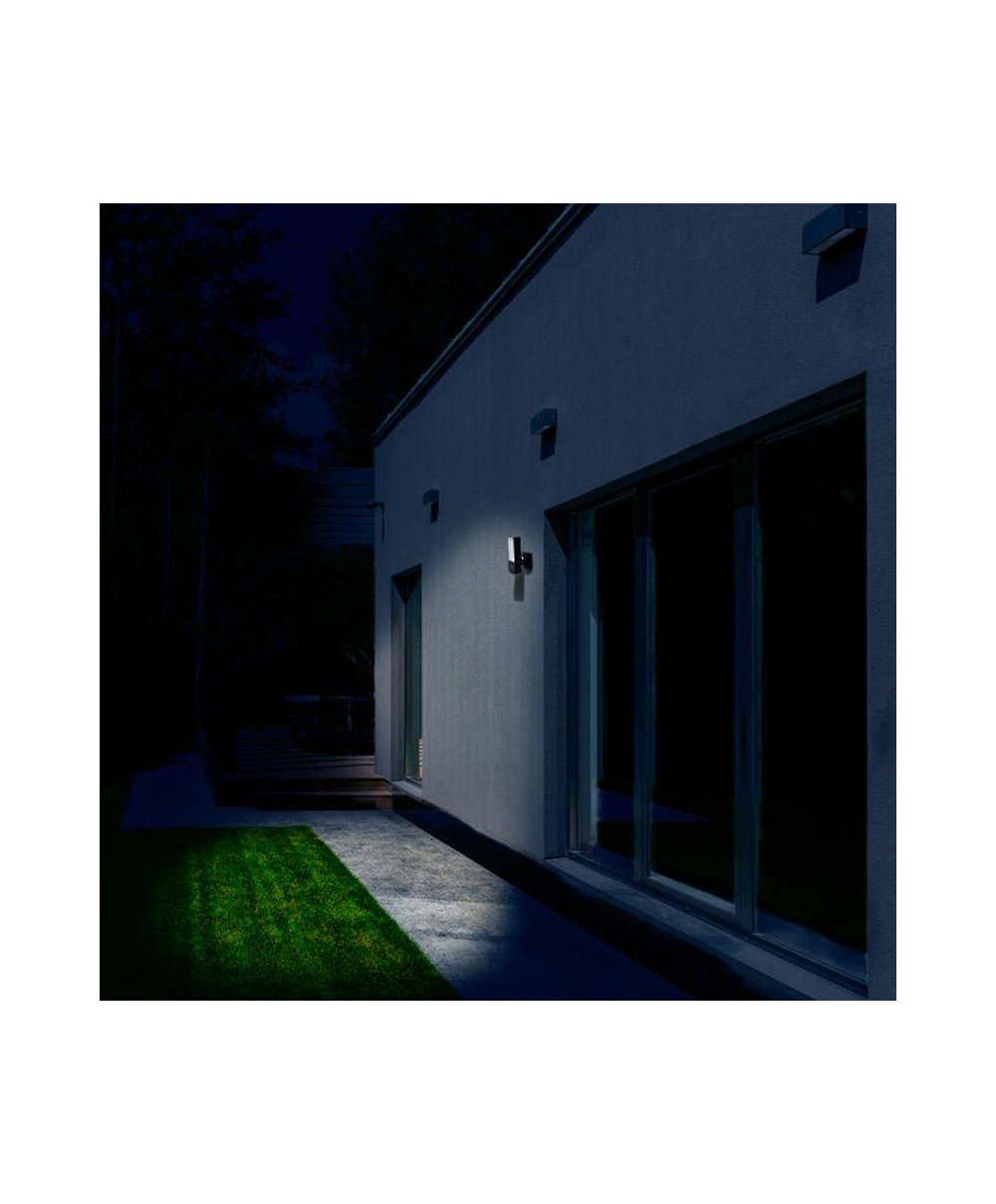Câmara adequada para uso exterior (IP65), com foco de luz branca, wifi e com capacidade de captar sons á distancia.