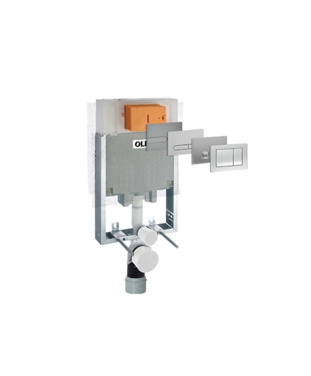 A gama de estruturas OLI80 Simflex é compatível com todo o tipo de sanitas suspensas. A Estrutura Sanita Suspensa OLI 80 Simflex +Placa Plain Cromado é indicada para encastrar em paredes de alvenaria.