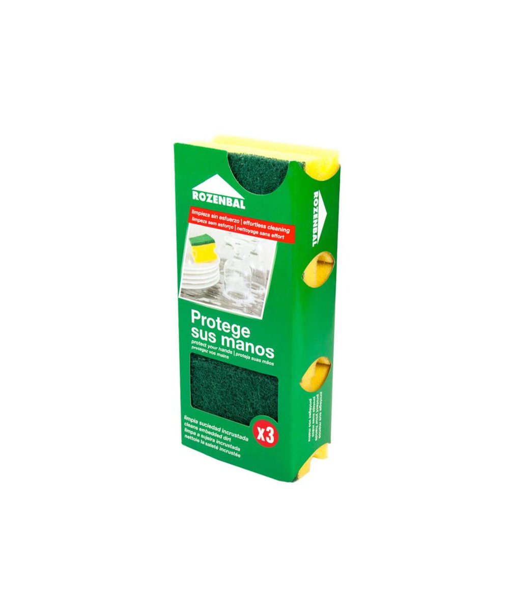 Esfregão salva unhas, a forma ergonómica facilita a proteção das mãos e unhas, durante a limpeza. A fibra verde bastante abrasiva é ideal para as tarefas mais duras da limpeza do lar como caçarolas, sertãs, etc. Com esponja de poliester para que retenha e gere espuma que ajude na limpeza. 9 x 7 x 4,55 cm - dupla face.