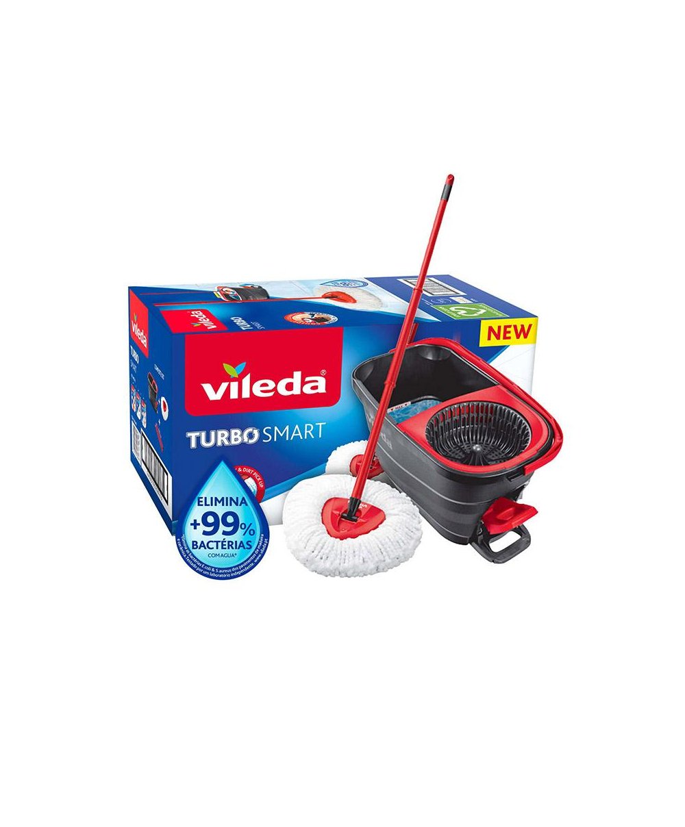 Sistema de esfregona rotativa com pedal: balde com pedal, cabo tripartido e esfregona de microfibras. Sistema cómodo e sem esforço: o Turbo Smart oferece uma limpeza mais cómoda e sem esforço retirando a necessidade de fazer força com os braços. Controla a humidade: a centrifugação com o pedal permite regular a quantidade de água da esfregona . É ideal porque se adapta a todo o tipo de pavimentos. Design e tamanho compacto: tamanho compacto (em comparação com o Sistema Turbo) que permite arrumar em áreas mais pequenas. Outos detalhes: 2 inclinações para esvaziar a água por ambos os lados e uma pega inferior que oferece mais comodidade. Pega longitudinal para uma maior estabilidade. Limpeza excelente: a recarga de microfibras triangular permite alcançar os cantos mais difíceis e o eixo rotativo e flexível permite chegar debaixo dos móveis.