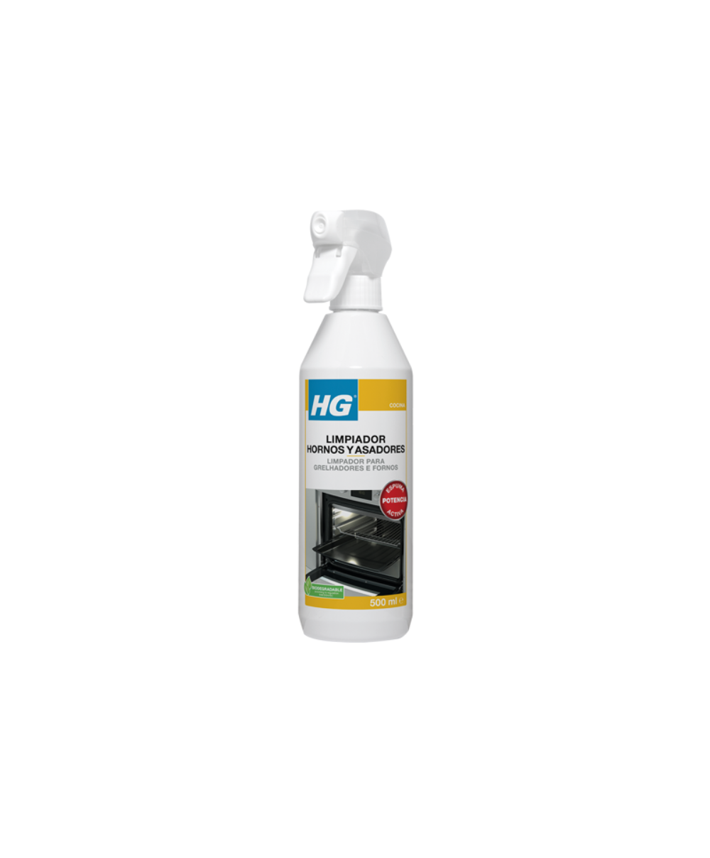 O HG Limpador para grelhadores e fornos limpa rapidamente e em profundidade quaisquer gorduras aderentes ou queimadas de fornos e grelhadores.