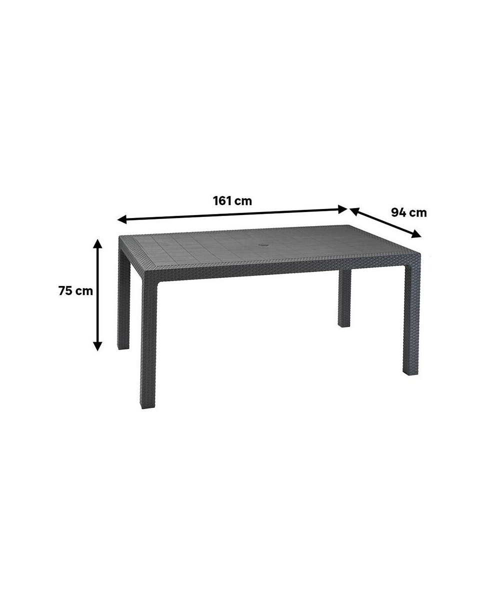 Inclui um furo para instalar um guarda-sol no centro da mesa.