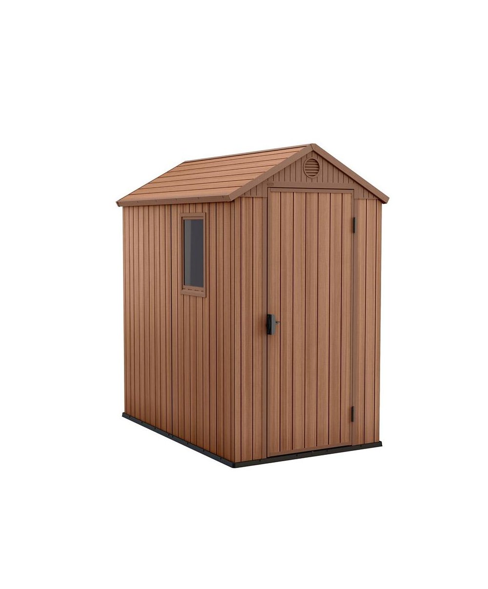 O Abrigo de Jardim Darwin combina funcionalidade e estética, sendo ideal para quem procura uma opção compacta e resistente para arrumação exterior. Fabricado com a tecnologia Evotech™, este abrigo apresenta painéis de resina de 16 mm de espessura que reproduzem fielmente a textura e aparência da madeira, proporcionando um visual natural sem os inconvenientes associados à madeira real, como apodrecimento, ferrugem ou descascamento.