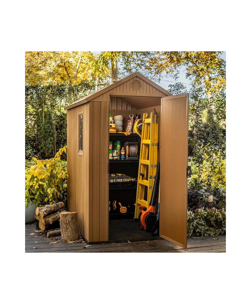 O Abrigo de Jardim Darwin é uma solução prática e elegante para armazenar ferramentas, equipamentos de jardinagem e outros objetos no seu espaço exterior. Com um design que imita a madeira natural, oferece durabilidade e resistência, sem necessidade de manutenção constante.