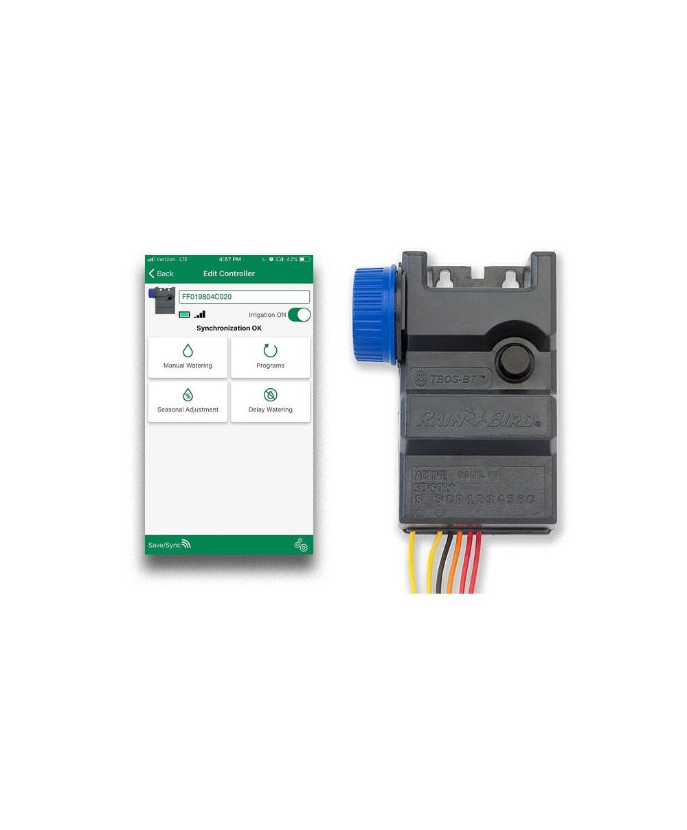 O programador a pilhas de 9V TBOS-BT oferece controlo de rega pois pode programar com o seu smartphone através da aplicação móvel Rain Bird gratuita. Instale o programador em separadores centrais de ruas e estradas, rotundas ou em qualquer local que requeira controlo de rega, mas não disponha de alimentação CA.