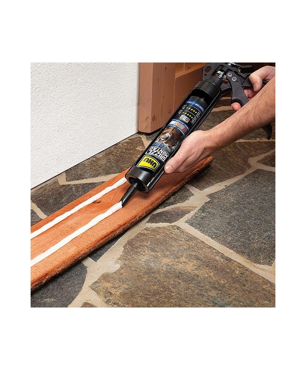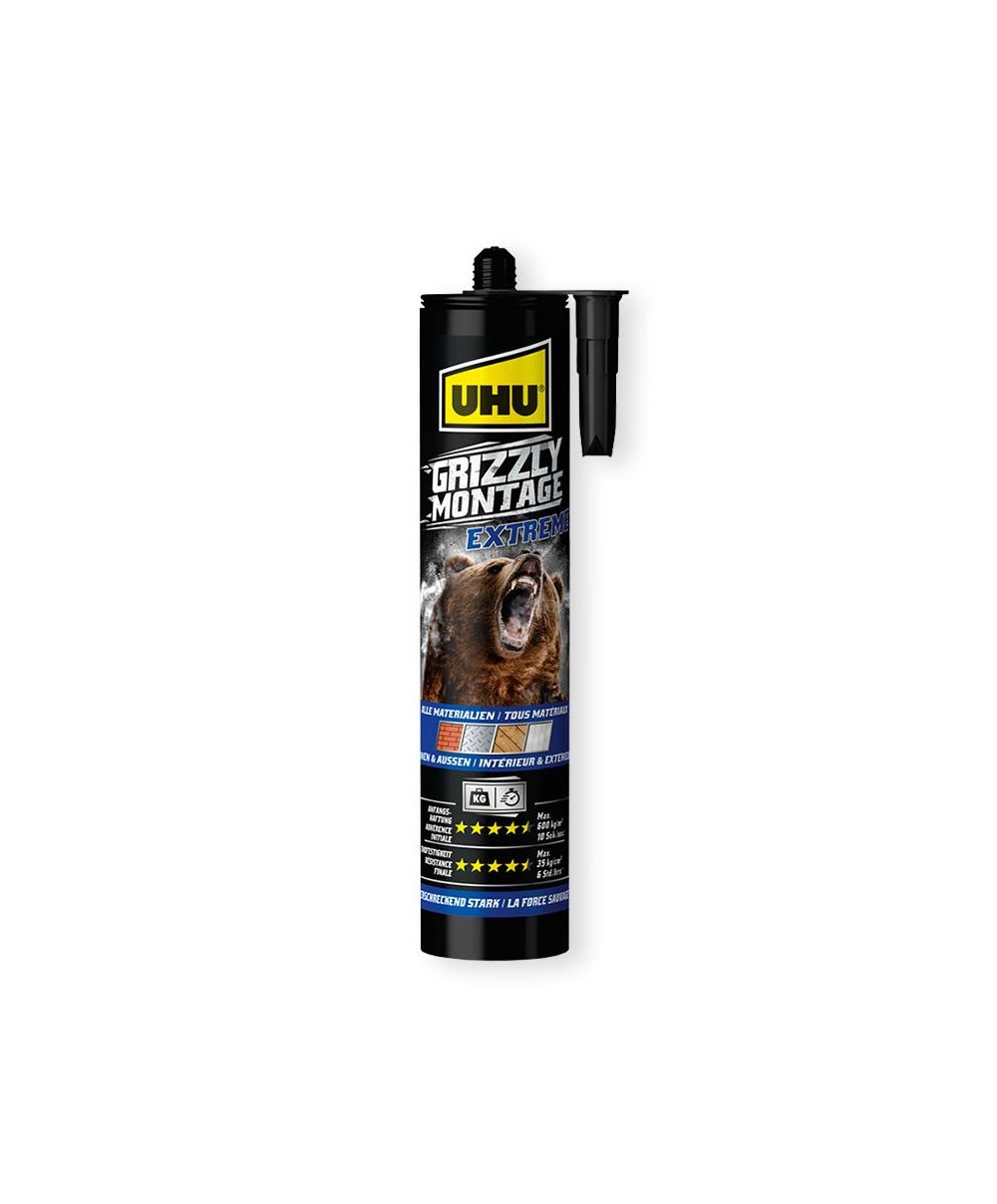 A cola UHU Grizzly Montage Extreme, em cartucho de 435g, é a mais recente inovação no que toca a colas de construção super fortes e rápidas, com uma maior aderência inicial e extrema resistência final para utilização tanto no interior como exterior