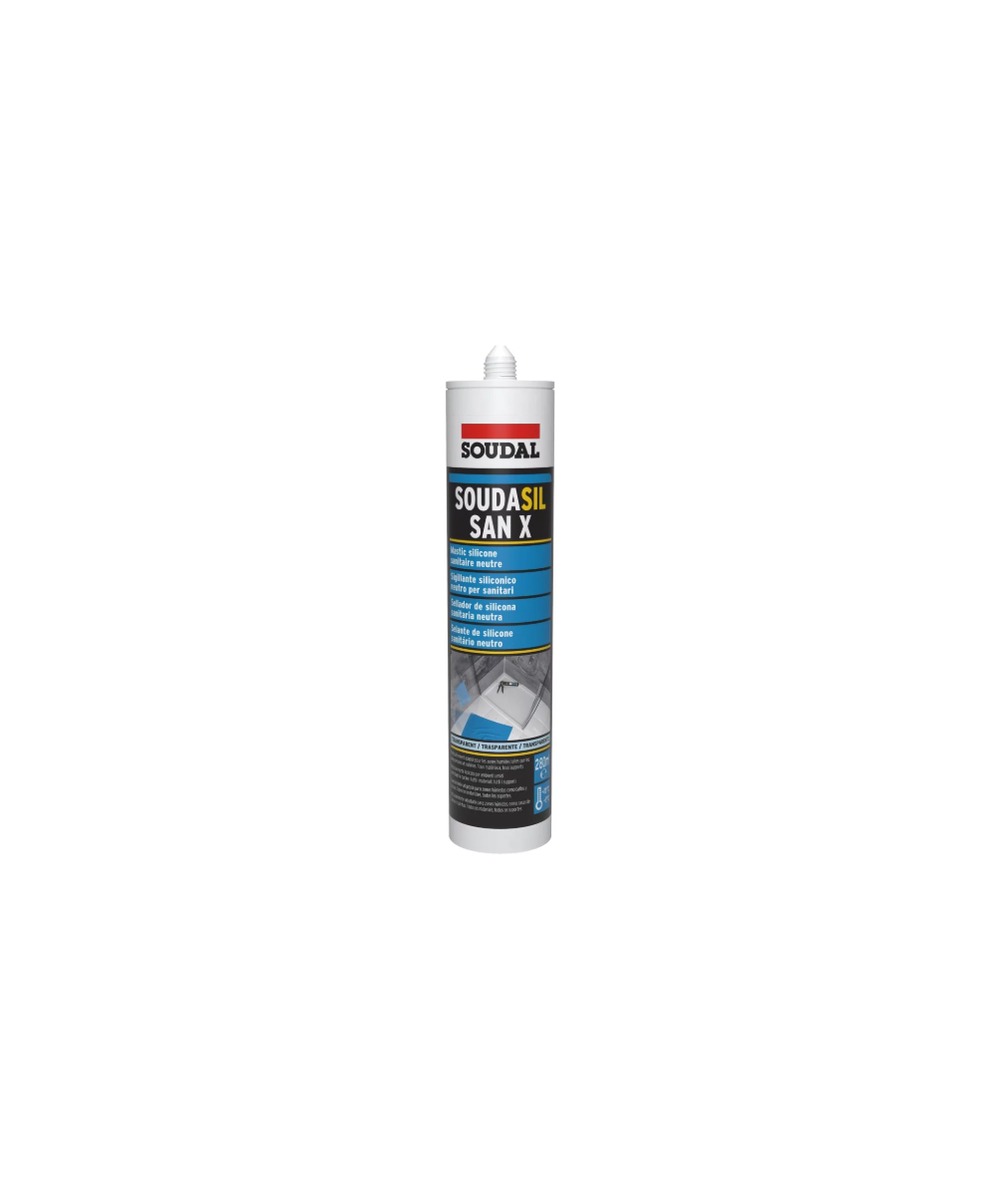O Silicone WC Neutro Soudasil SanX Branco 280ml, da marca Soudal, é um selante sanitário de alta qualidade, monocomponente e elástico, à base de silicone neutro. É especialmente formulado para aplicações em instalações sanitárias e cozinhas, oferecendo excelente resistência à humidade e ao bolor, graças à incorporação de biocida com ação fungicida (ZnP). Após a cura, mantém-se permanentemente elástico e apresenta ótima adesão a diversos materiais, sem causar corrosão. Além disso, possui resistência aos raios UV, garantindo que a cor branca permaneça inalterada ao longo do tempo.